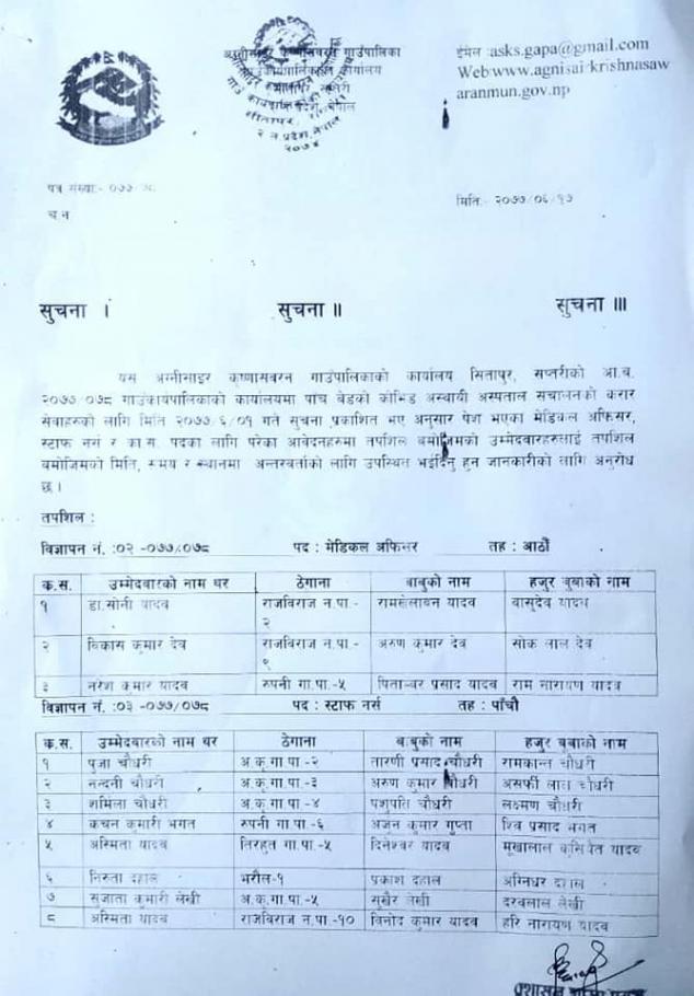 अग्नीसाईर कृष्णासवरन गाउँ कार्यपालिका ( अन्तरबार्ता सम्बन्धि सूचना )