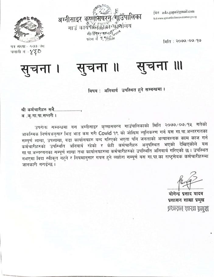 » अग्नीसाईर कृष्णासवरन गाउँ कार्यपालिका ( सबै लाई जानकारी गरिएको सम्बन्धमा )