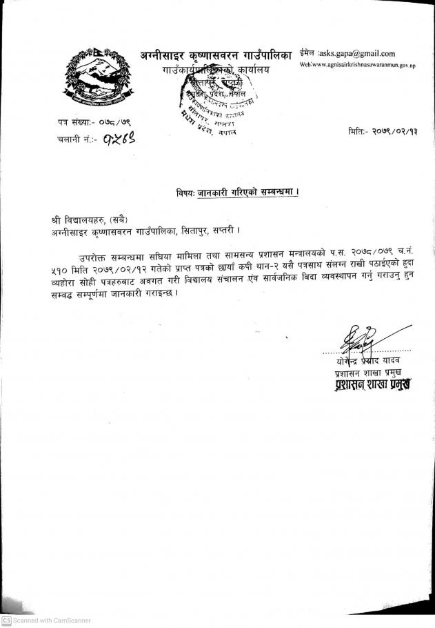 » जानकारी गराईएको सम्बन्धमा