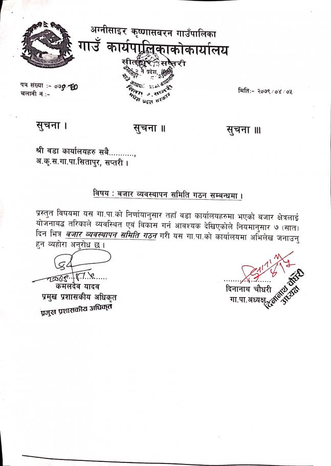 बजार व्यवस्थापन समिति गठन सम्बन्धी सूचना