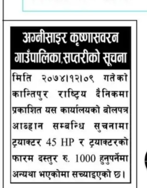 » बोलपत्र सूचना सच्याइएको सम्बन्धी ।