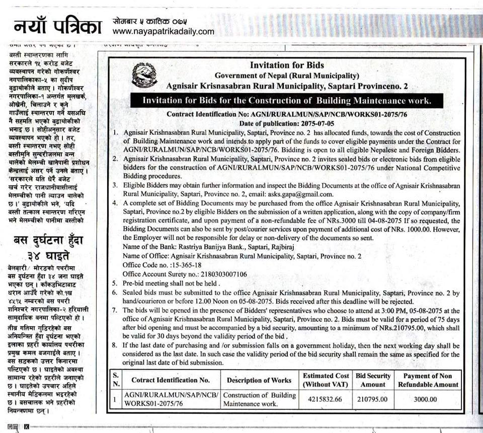 » भवण निर्माण तथा मर्मत सम्वन्धी बोलपत्रको सूचना ।