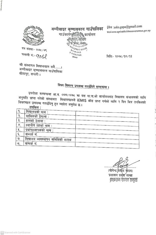 विवरण उपलब्ध गराइदिने सम्बन्धमा ।