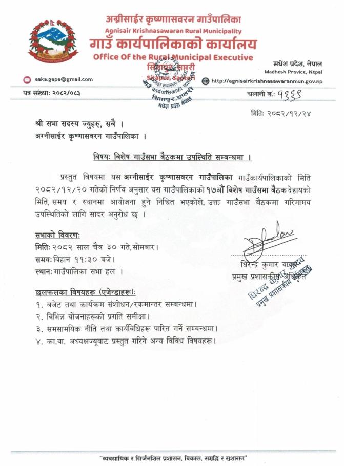विशेष गाउँसभा बैठकमा उपस्थिति सम्बन्धमा