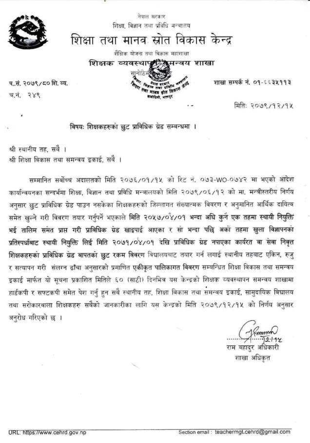 » शिक्ष्कहरुको छुट प्राविधिक ग्रेड सम्बन्धमा