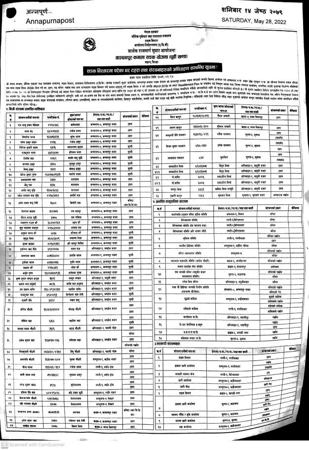 » सडक बिस्तारमा परेका घर टहरा तथा सरंचनाहरुको अधिग्रहण सम्बन्धि सूचना