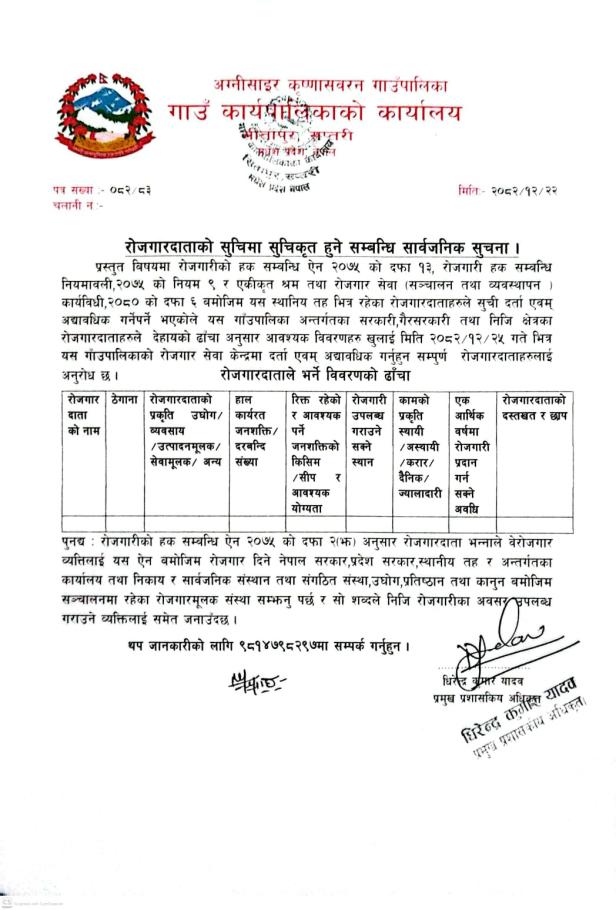 | रोजगारदाताको सुचिमा सुचिकृत हुने सम्बन्धि सार्वजनिक सुचना । | 04/05/2026 - 12:44 |