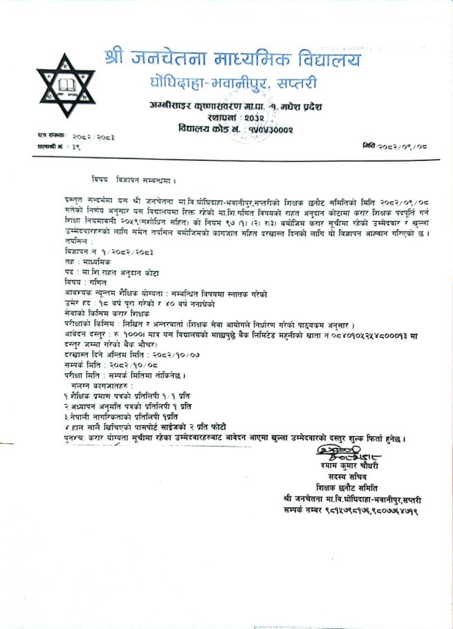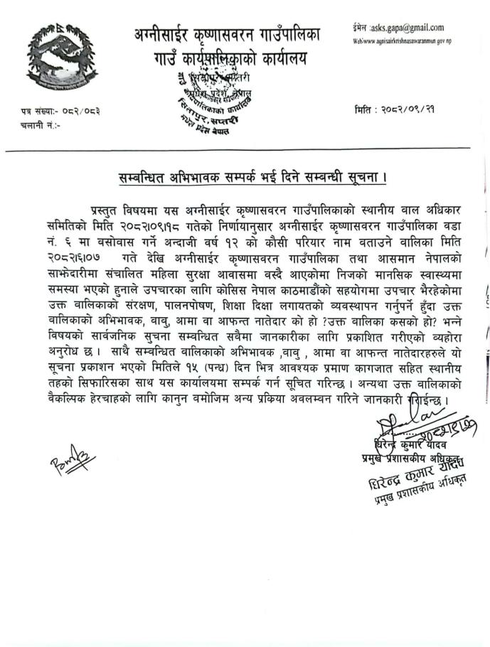 | सम्बन्धित अभिभावक सम्पर्क भई दिने सम्बन्धी सूचना । | 01/05/2026 - 15:04 |